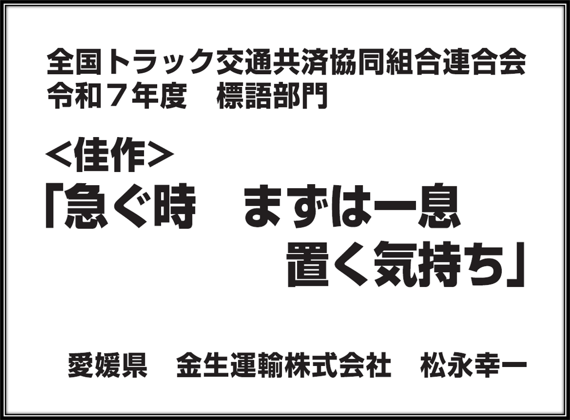 四国交通共済が募集している標語で『トラックドライバーに対して安全運転、事故防止を呼びかけるもの』に関して、