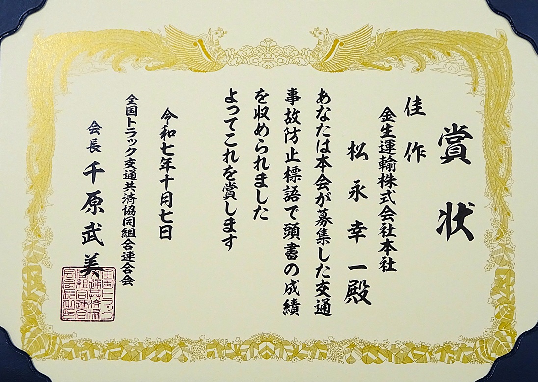 全国トラック共済協同組合連合会 令和7年度 交通事故防止作品の入選